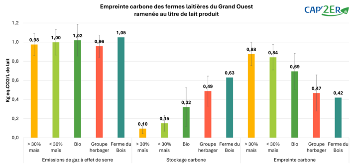 Les fermes du groupe herbager Pathways émettent légèrement moins de gaz à effet de serre par litre de lait que la moyenne régionale, grâce à une maximisation du pâturage. Leur maillage de haies et leurs prairies de longue durée favorisent un maintien de stocks de carbone élevés dans les sols, compensant jusqu’à 51 % des émissions, contre 10 % dans les systèmes intégrant plus de 30 % de maïs. Leur faible recours aux intrants azotés (notamment car les fermes sont en bio), réduit de 75 % l’excédent du bilan et limite les risques de pollution de l’eau et de l’air.