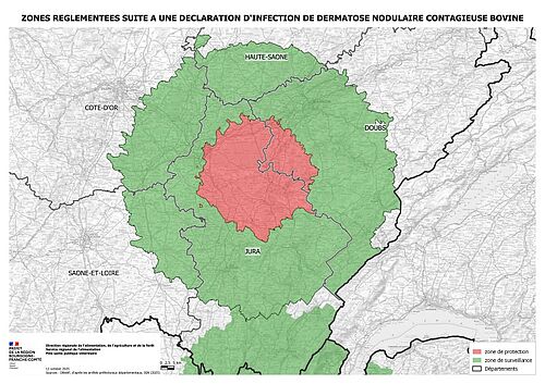 Le 11 octobre, la confirmation d'un nouveau foyer dans le Jura (commune d'Ecleux, proche du Doubs) a conduit à la mise en place d'une nouvelle Zone Réglémentée, la ZR4. Elle comprend une grande partie du Jura et une partie des départements limitrophes : Doubs, Côte-d'Or, Haute-Saône et Saône-et-Loire. Les départements du Jura et du Doubs ont des communes en zone de protection. Les autres départements ont uniquement des communes en zone de surveillance sur une partie de leur territoire. La ZR4 est attenante à la ZR1 et ne déborde pas sur la Suisse.