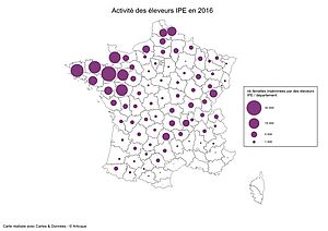 Près de 5 000 éleveurs inséminateurs (IPE) sont réglementairement déclarés en 2016 dans le système national d’information génétique, et parmi eux, 4 430 enregistrent de inséminations (IA) bovines. Ils sont répartis surtout dans régions d'élevage laitier.