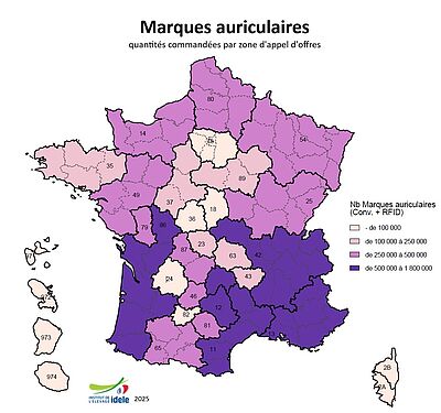 L'utilisation des repères de format barrette (hors DVC chevreaux) représente 13 % des marques auriculaires utilisées à l'échelle nationale. 99% sont des barrettes à 1 élément.