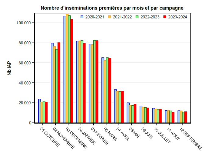 Statistiques des inséminations sur femelles allaitantes, campagne 2024