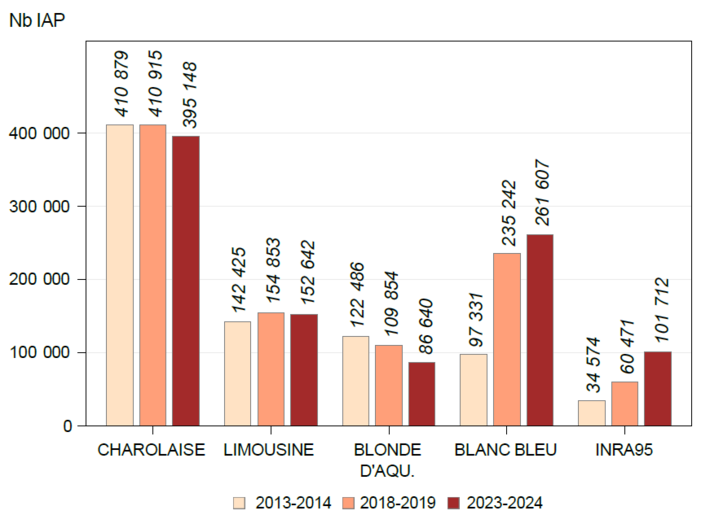 La majorité des doses IAP des autres races de taureaux allaitants sont en race pure.