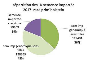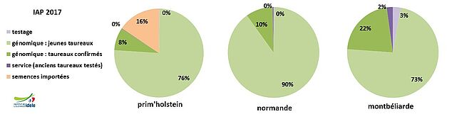 En 2017, dans la race normande, ce sont en majorité (90%) des IA de jeunes taureaux évalués en génomique sans avoir de filles qui sont utilisés pour renouveler les troupeaux. Les IA de cette catégorie représentent 73% en montbéliarde, où 13% sont faites par des taureaux en confirmation sur descendance, dont les premières filles viendront fiabiliser les index à leur entrée en production.