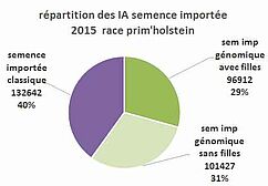 | En prim'holstein, les jeunes taureaux évalués en génomique sans filles représentent 70% des IAP 2015, auxquels on peut ajouter 5% réalisées par des jeunes taureaux étrangers. |