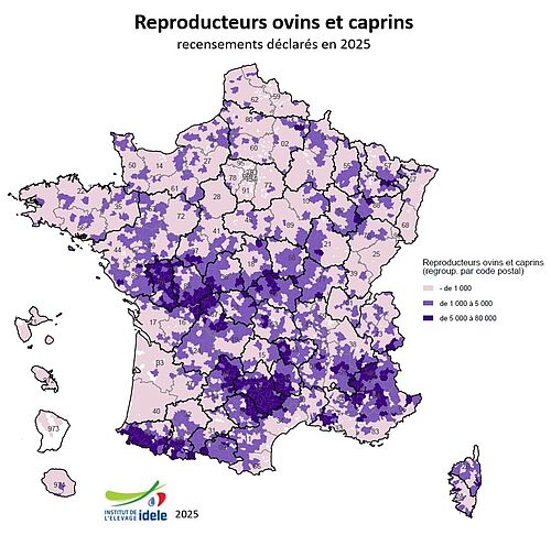 En 2025, 84 237 exploitations ovines et caprines détenant 6,29 millions de reproducteurs ont déclaré un recensement (données BDNI, mai 2024). Parmi ces exploitations, on dénombre :